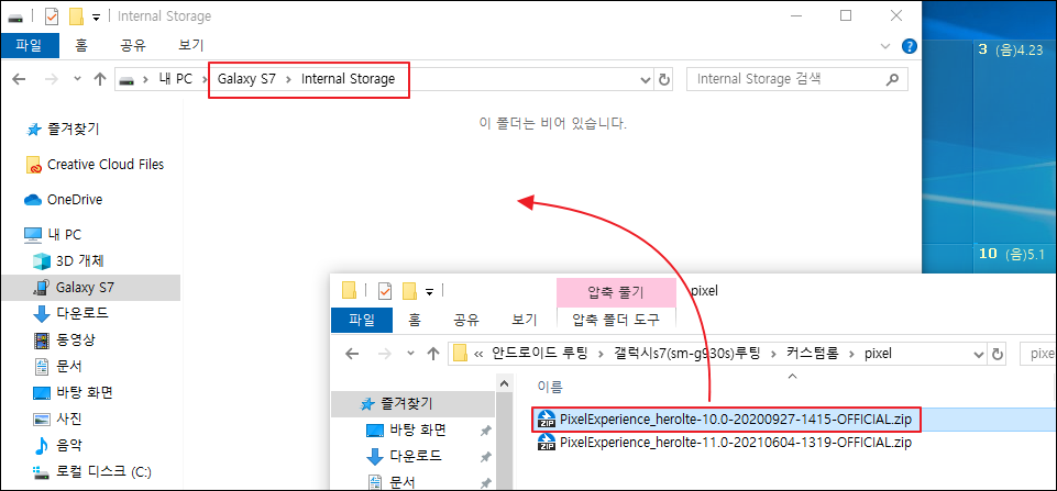3. Pixel 롬 단말기 내부로 이동