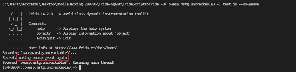 XOR 연산으로 어떤 값이 출력되는지 Frida로 알아볼 수 있습니다.