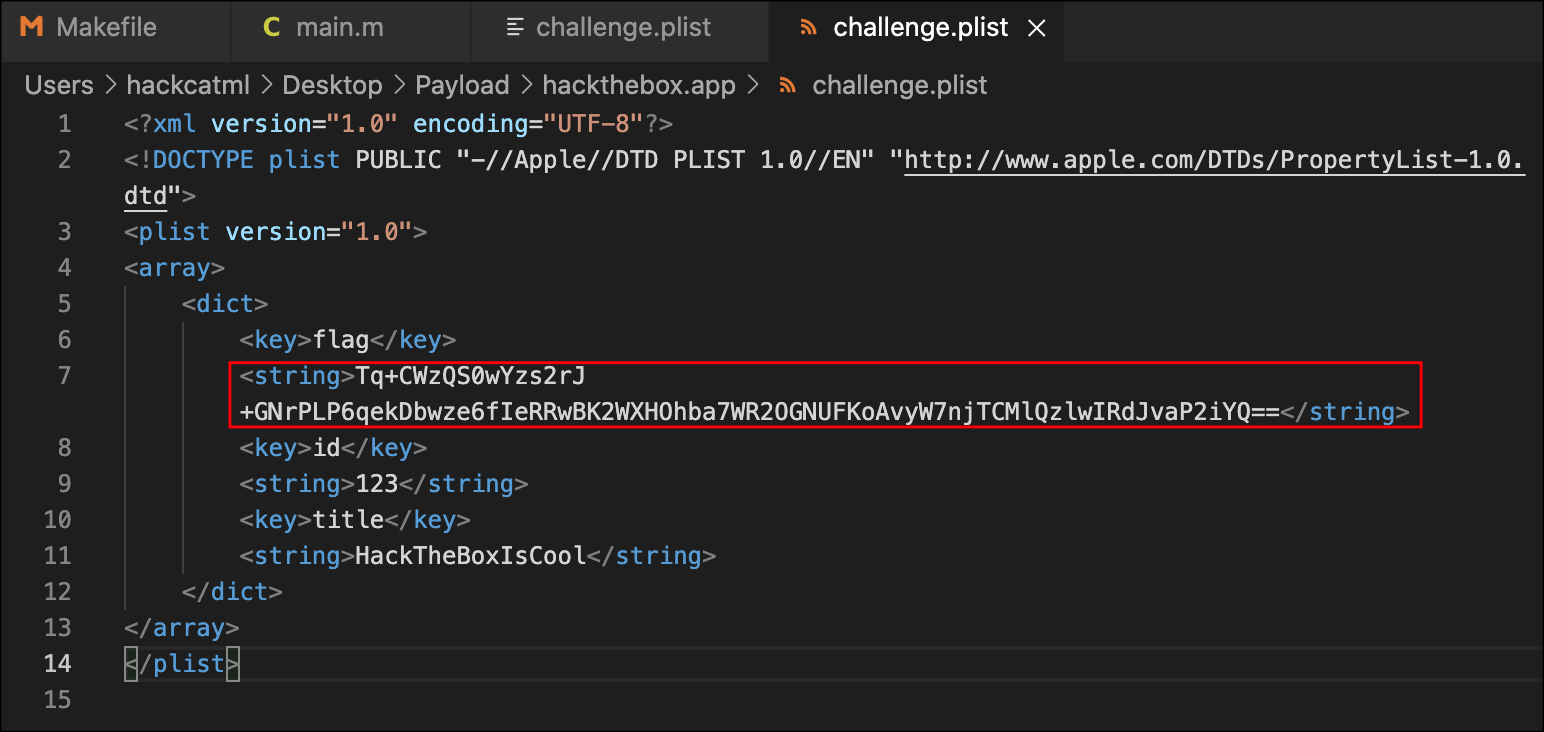 challenge.plist 파일의 flag 키값: Tq+CWzQS0wYzs2rJ+GNrPLP6qekDbwze6fIeRRwBK2WXHOhba7WR2OGNUFKoAvyW7njTCMlQzlwIRdJvaP2iYQ==