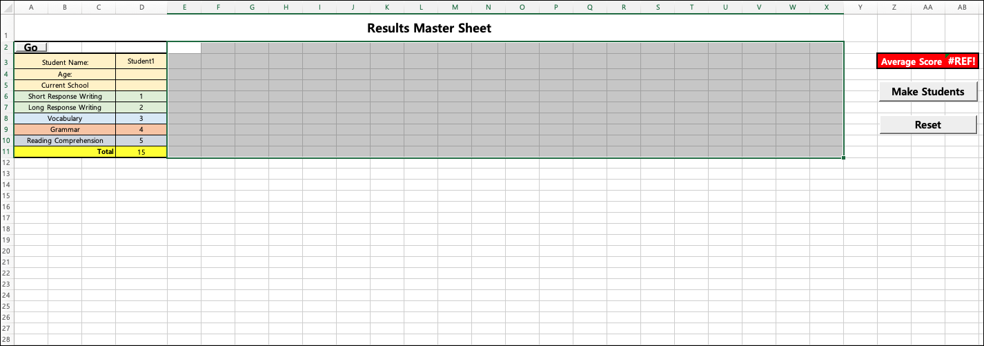 ==> 실행 결과. Range("A2","D11"), Range("A1","X1")을 제외하고 Range("A1:X" & lastrow) 선택.