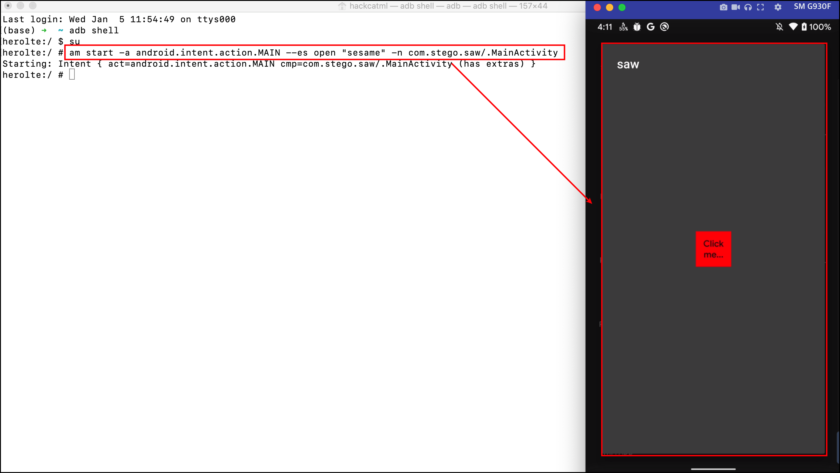 am start -a android.intent.action.MAIN --es open "sesame" -n com.stego.saw/.MainActivity