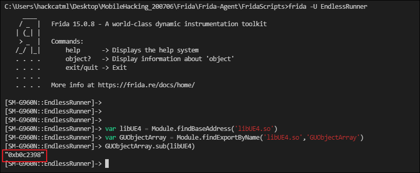 GUObjectArray는 EXPORT되고 있으므로 Frida로도 Offset값을 확인 가능합니다.