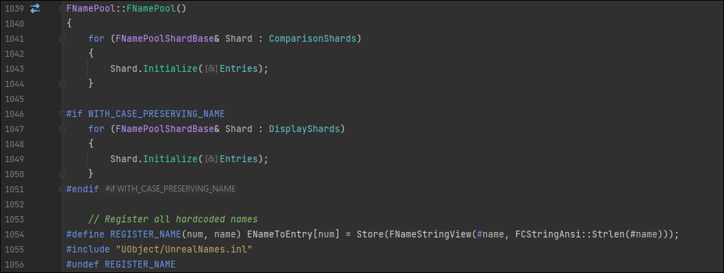 해당 문자열을 IDA에서 검색합니다. 해당 문자열이 들어있는 곳이 FNamePool::FNamePool() 입니다.