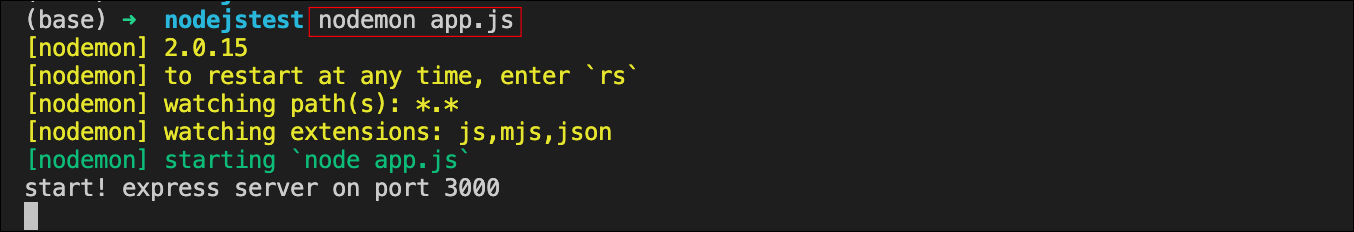 nodemon이 없다면 'npm install nodemon -g' 명령어로 설치합니다. // nodemon은 app.js 파일을 수정하고 저장하면 자동으로 서버를 다시 시작해줌.