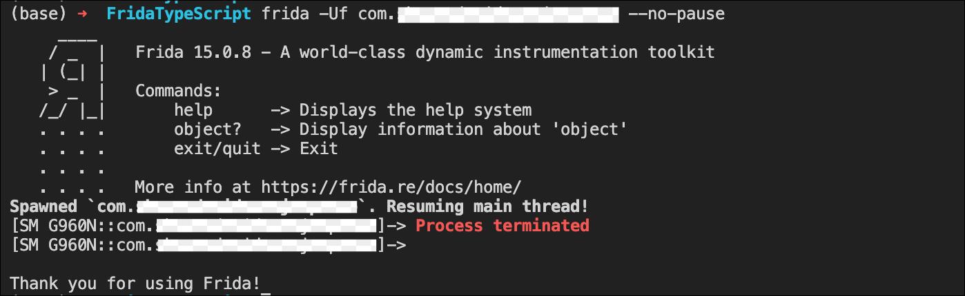 심지어 frida spawn으로 앱 프로세스에 붙이자마자 바로 떨궈버립니다.