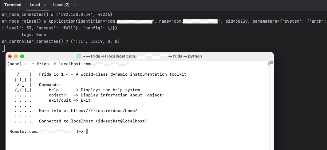 로컬에서 frida-portal 파이썬 코드 작성해서 구동시켜줍니다. (출처: https://github.com/frida/frida-python/blob/bbdcdfaca821276361399775bd81599710ec0625/examples/portal_server.py)