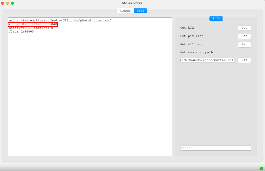 "/System/Library/Audio/UISounds/photoShutter.caf" 파일의 vnode 를 구합니다.
