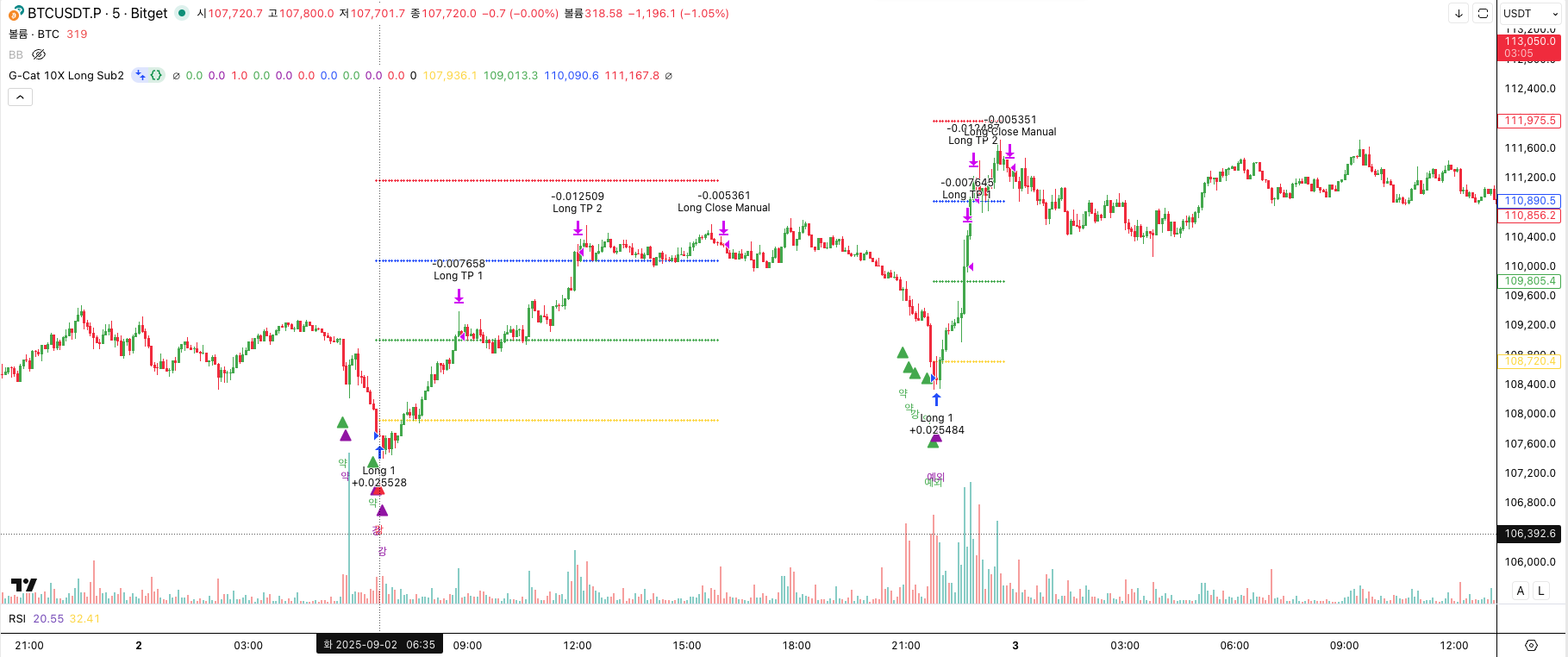 3차 익절은 빨간선을 건드리면 되는데, 3차선 안 닿을것 같으면 그냥 수동으로 개입해서 익절하고 "Long Close Manual" 이라고 표시합니다.