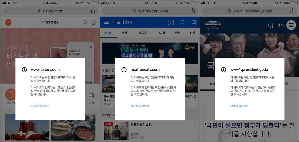 (대형 웹사이트들은 기본적으로 hsts 헤더를 설정해 놓았기 때문에 안됨)