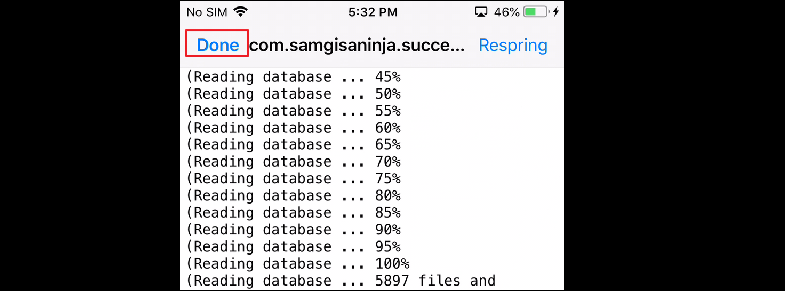2. 설치가 완료되면 Done을 클릭(Respring하면 앱 아이콘이 바탕화면에 나타나지 않음)