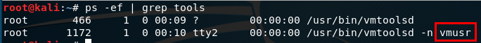 ps -ef | grep tools 로 확인을 해봤더니, vmusr프로세스가 돌아가지 않고 있네요. 설치해줍니다.