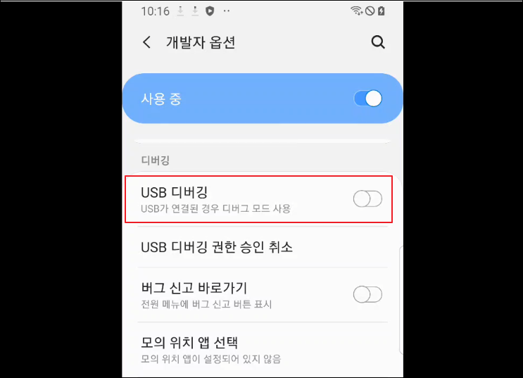 - USB 디버깅 활성화: