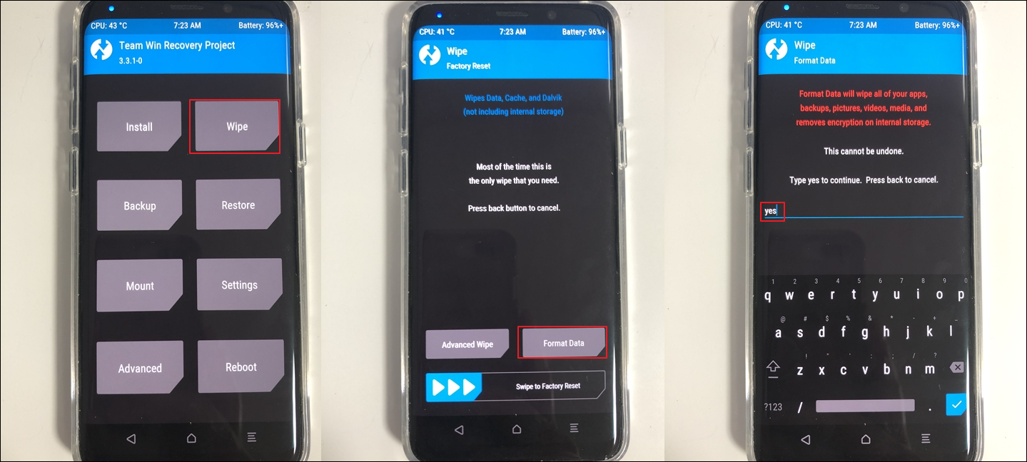 Wipe --> Format Data --> "yes" 입력