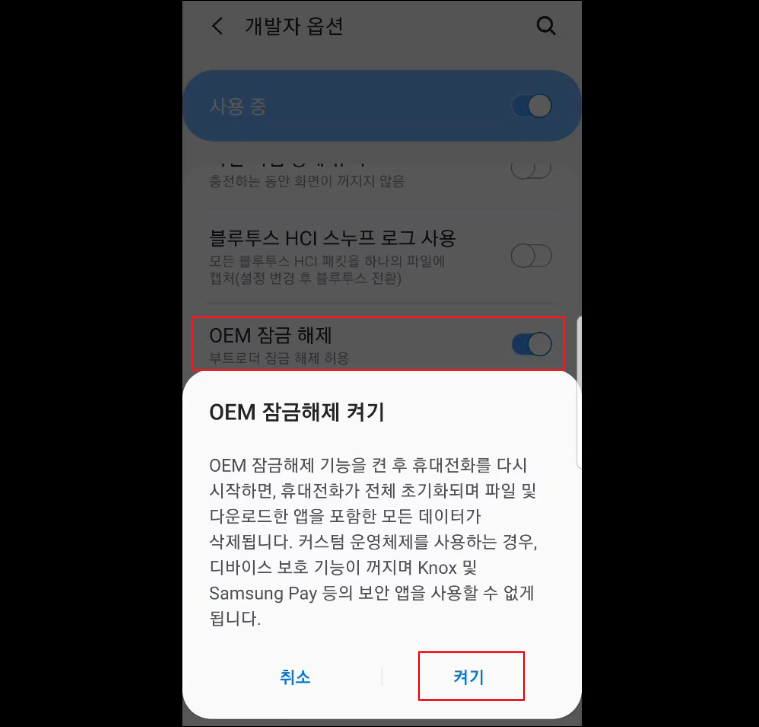 - OEM 잠금 해제 설정: