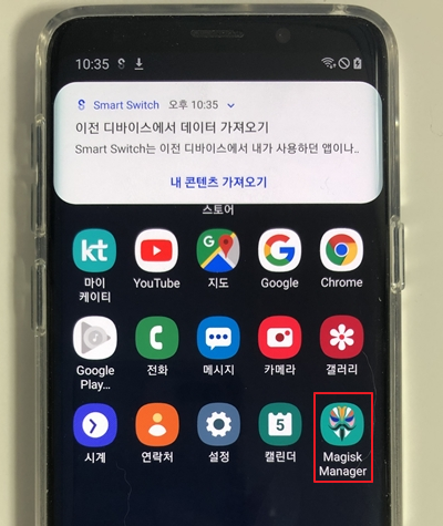 재부팅 후 바탕화면에 Magisk 앱 설치되어 있으면 루팅 성공