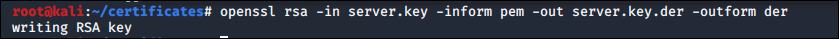 openssl rsa -in server.key -inform pem -out server.key.der -outform der
