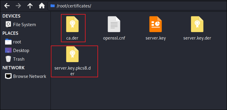 openssl pkcs8 -topk8 -in server.key.der -inform der -out server.key.pkcs8.der -outform der -nocrypt
