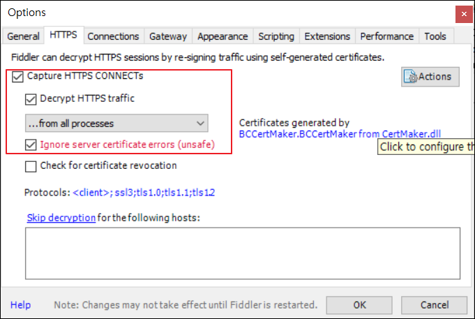certmaker extension 검색하여 설치(https://telerik-fiddler.s3.amazonaws.com/fiddler/addons/fiddlercertmaker.exe)