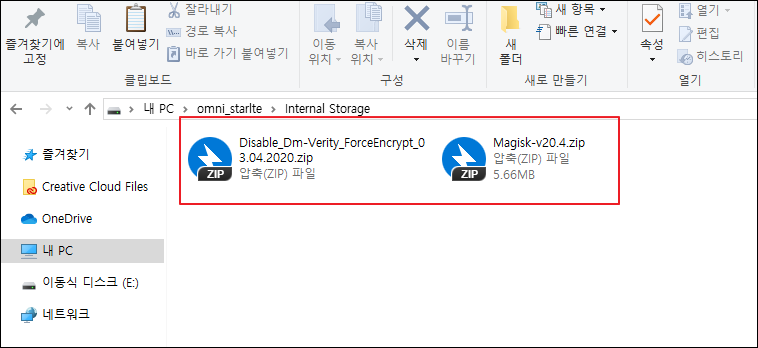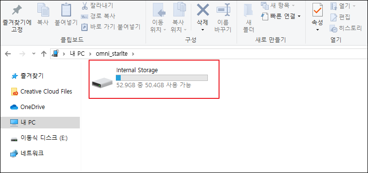 윈도우 파일탐색기를 실행하여 다음 파일들을 폰 내부 저장공간으로 이동시켜줌