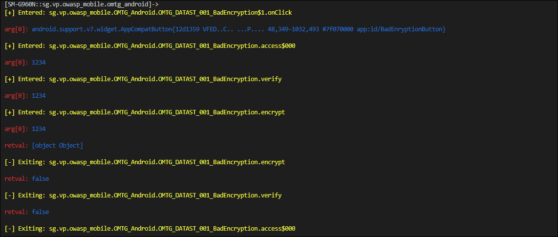 실행결과(MSTG-Android-Java 앱에 대하여 Test)