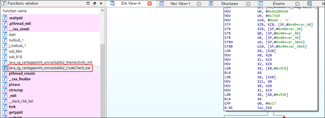 ■so파일 동적디버깅(OWASP UnCrackable level2 대상 test)