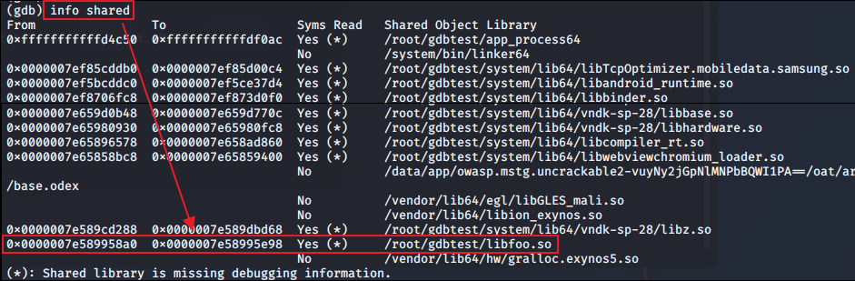info shared [so파일 이름] // 대상 so파일의 주소정보 파악