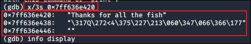 x/s <address> // 주소값에 저장되어 있는 정보를 문자열로 출력