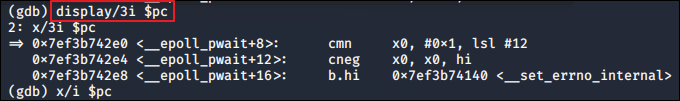 display/ni $pc-n*4 // instruction 주소값이 4만큼씩 증가한 경우, 이전 n개의 instruction 출력. ex. display/3i $pc-12