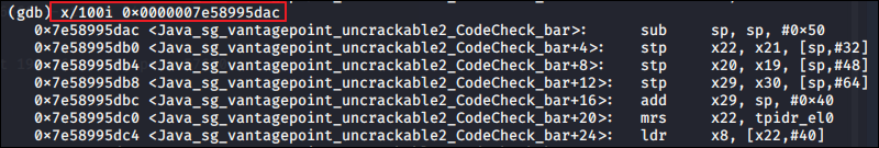 x/ni <주소> // 관심 함수의 주소값에서 i(Instruction) 기준 n줄의 Instruction 출력. ida로 같이 보면서 breakpoint를 설정할 주소값을 파악하는게 중요.
