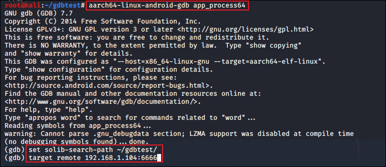 ndk 디렉터리(android-ndk-r21d/prebuilt/android-arm64/gdbserver/)에 있는 gdbserver를 안드로이드 단말기의 /system/bin/ 하위로 복사