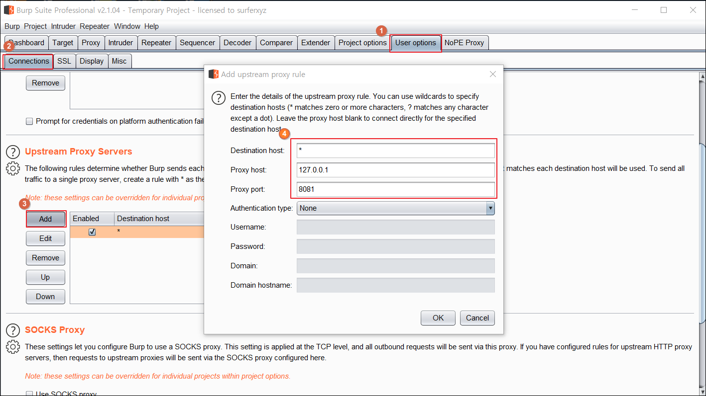 이 경우 OWASP ZAP을 burp의 Upstream Proxy로 설정하여 해결 가능.