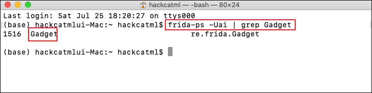 frida-ps -Uai | grep Gadget // FridaGadget 실행 여부 확인