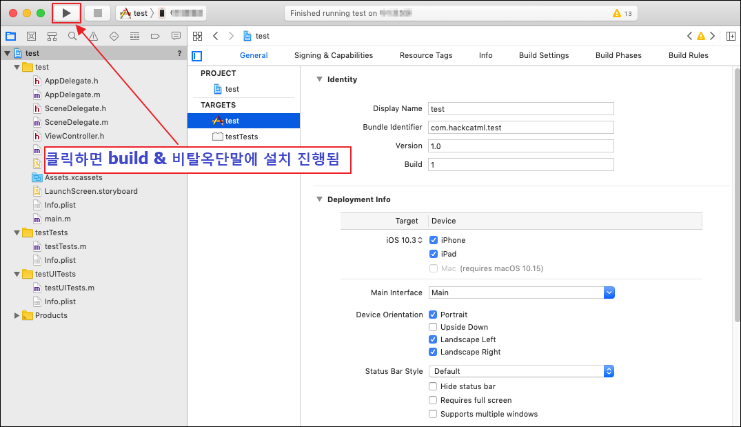 Xcode test 프로젝트 생성하고, 비탈옥단말에 설치 및 Profile 신뢰설정.