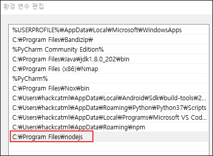 nodejs 설치(구글에서 검색하여 기본 default로 설치)