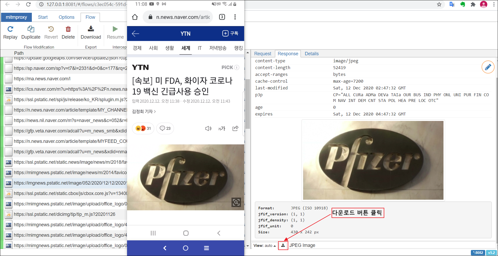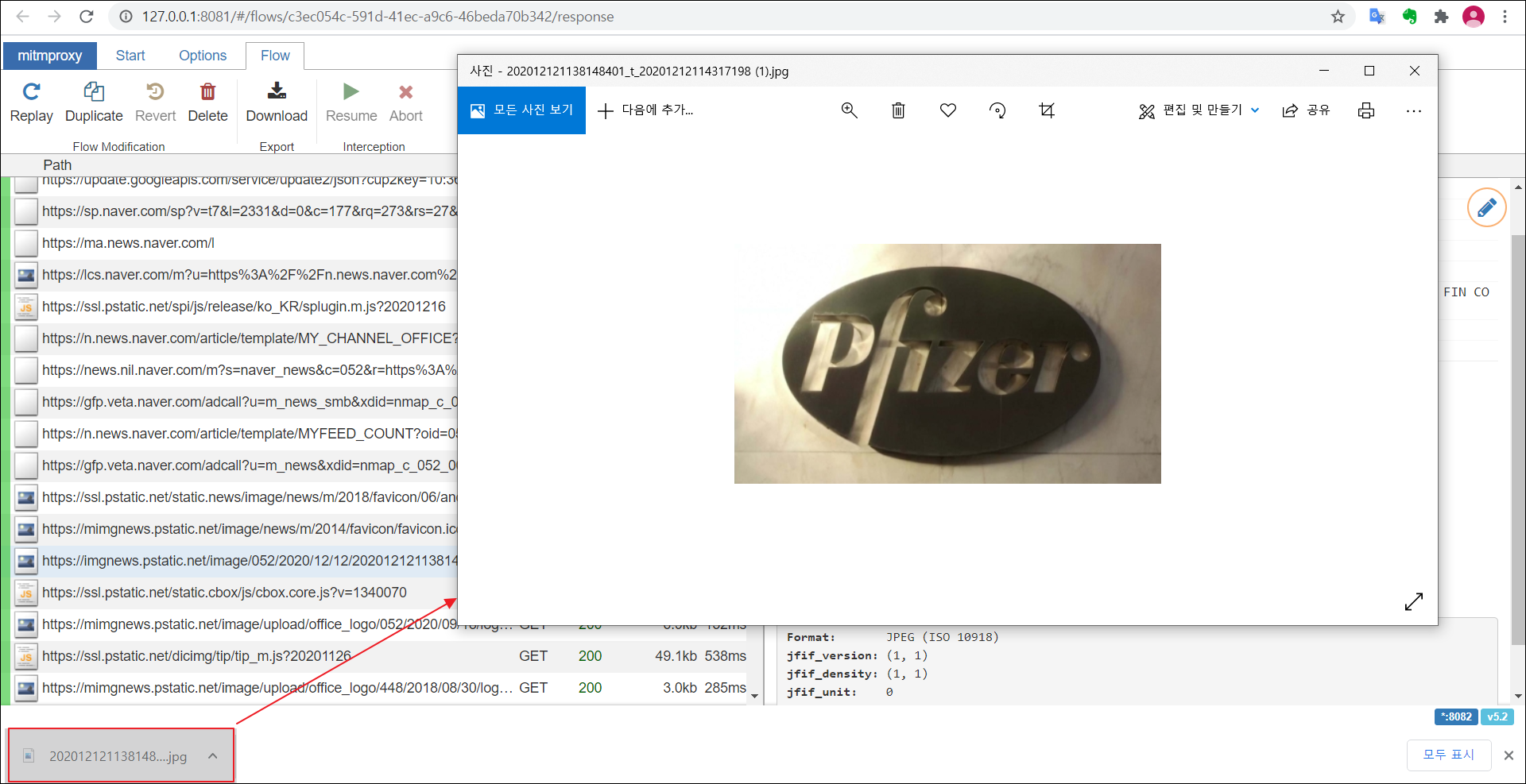 "mitmweb"을 사용하면 서버와 클라이언트가 통신과정에서 주고 받는 파일 다운로드가 가능합니다.