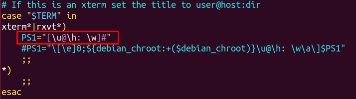 원래 있던 PS1구문은 주석처리 해주고 PS1="[\u@\h: \w]#" 을 삽입합니다.