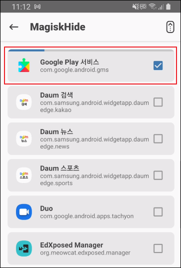 변경했는데도 Fail이 뜬다면 "Google Play 서비스"를 hide 합니다.