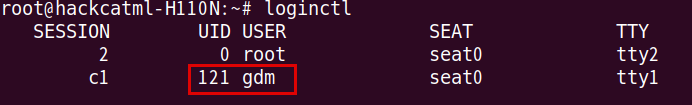 loginctl 명령어로 확인합니다. 저는 gdm 계정의 UID가 121번이네요. gdm(Gnome Desktop Manager) account가 로그인 과정을 진행하므로 그 권한으로 x11vnc를 시작시킬 필요가 있기 때문입니다.