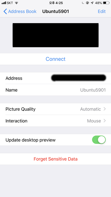 앱스토어에서 검색하니 vnc viewer 앱이 있었습니다. 설정도 간단하네요. 설치 후 아래와 같이 주소를 등록해줍니다.