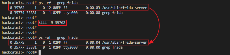 프리다를 Cydia나 Sileo레포에서 설치하거나, deb파일을 직접 설치하면 kill 명령어로 죽여도 다시 실행됩니다.