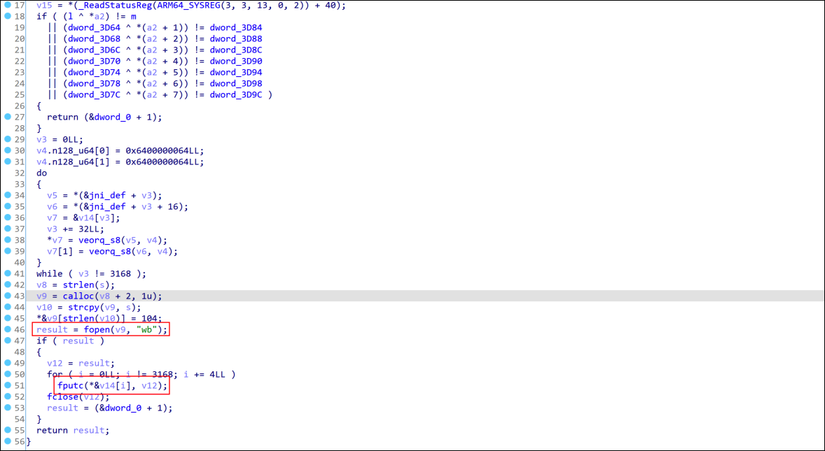 _Z17_Z1aP7_JNIEnvP8_1PKcS0_ 함수의 pseudocode를 조금 더 살펴보면 문자열을 제대로 입력하면 파일을 만들어서 무언가를 쓰는 로직입니다.